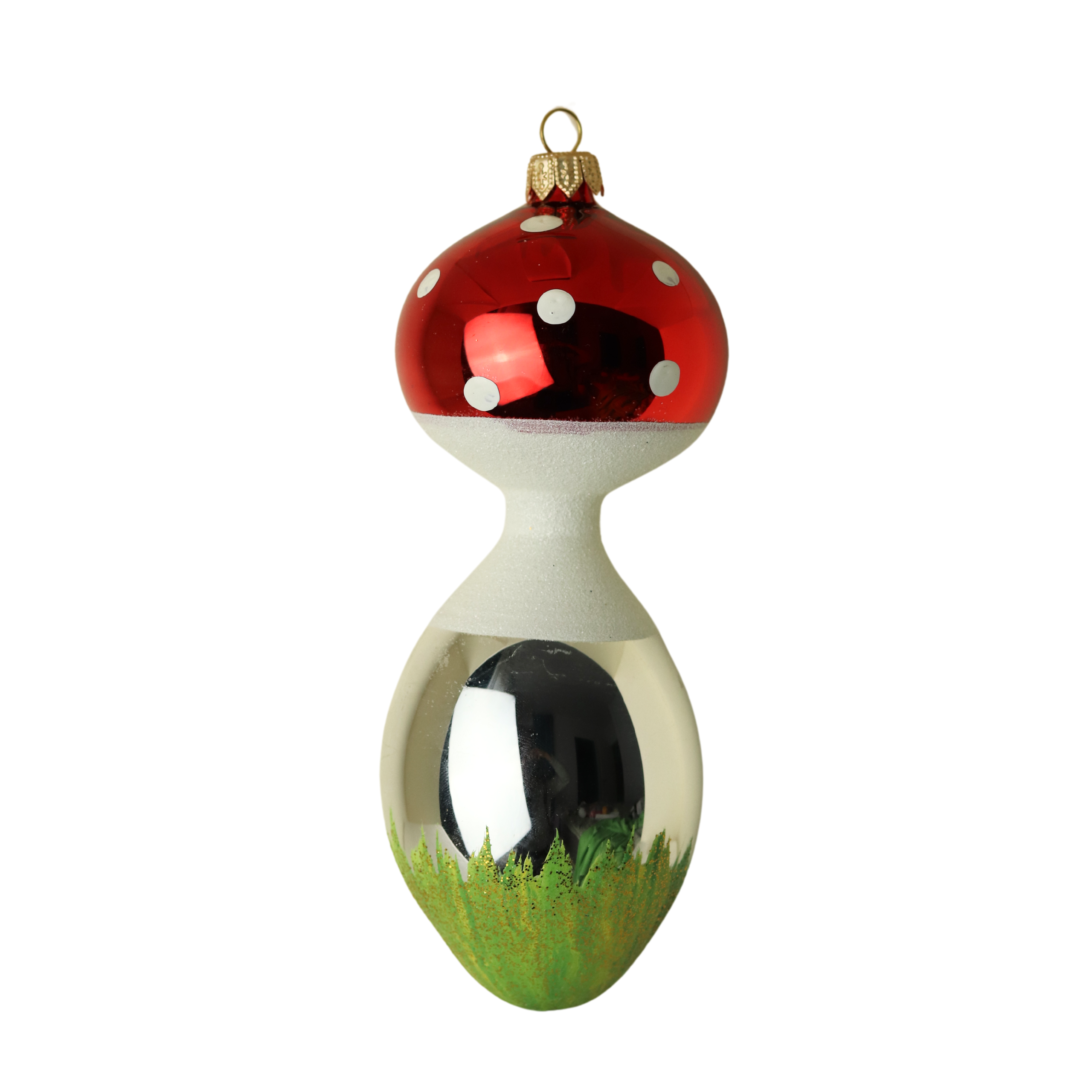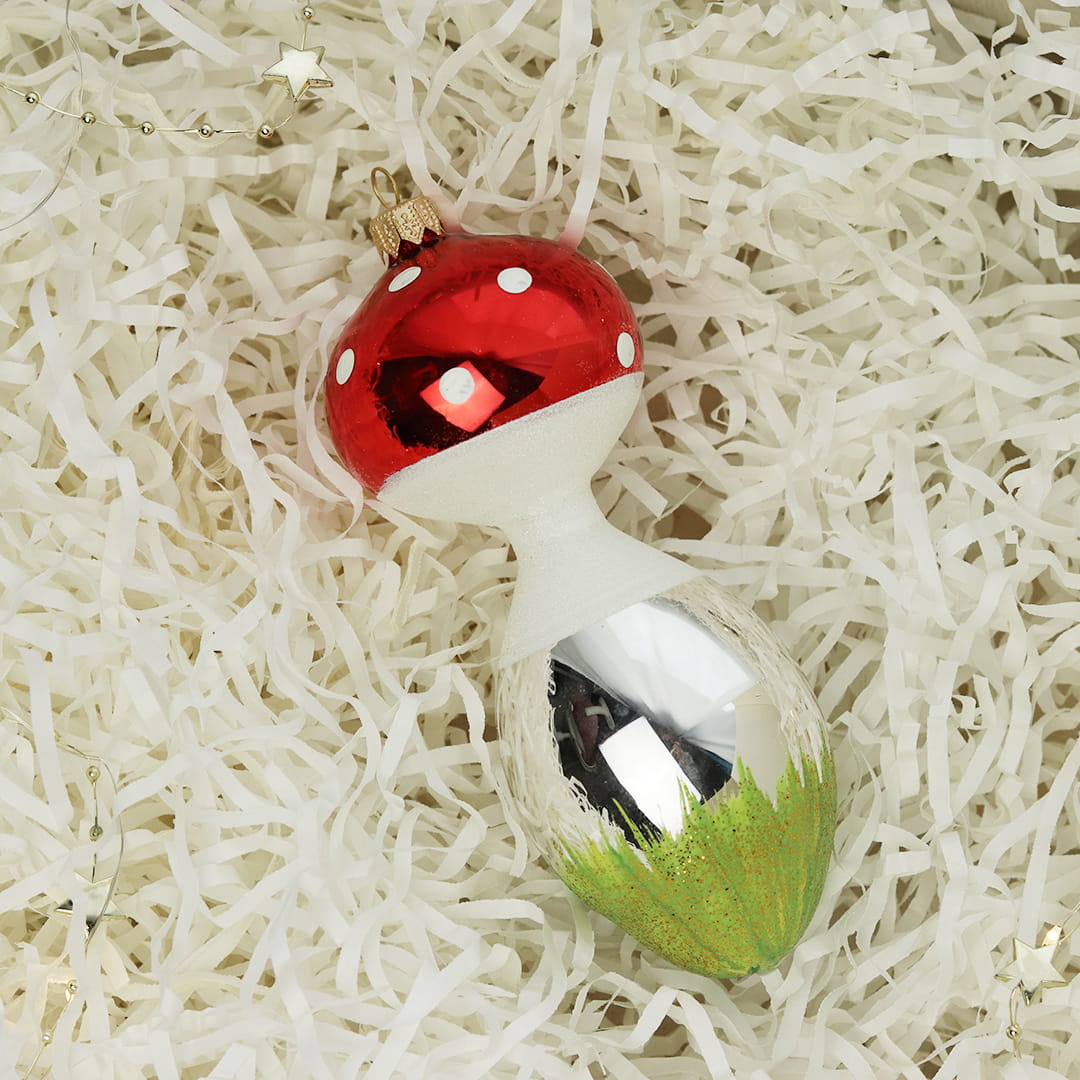 Ta urocza bombka w kształcie grzybka muchomorka to klasyczna, ręcznie malowana ozdoba, która doda Twojej choince magicznego, leśnego klimatu! Bombka przedstawia muchomorka z intensywnie czerwonym kapeluszem w białe kropeczki.