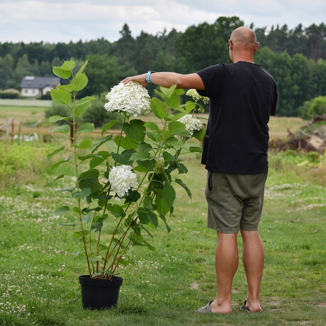Sadzenie i pielęgnacja: Hortensję 'Strong Annabelle' najlepiej sadzić na stanowiskach półcienistych do cienistych, w żyznej, wilgotnej i dobrze przepuszczalnej glebie. Roślina wymaga regularnego podlewania, szczególnie w okresach suszy. Na wiosnę zaleca się przycięcie pędów do 30-40 cm nad ziemią, aby pobudzić nowy wzrost i zapewnić obfite kwitnienie. Jest w pełni mrozoodporna i nie wymaga okrywania na zimę.