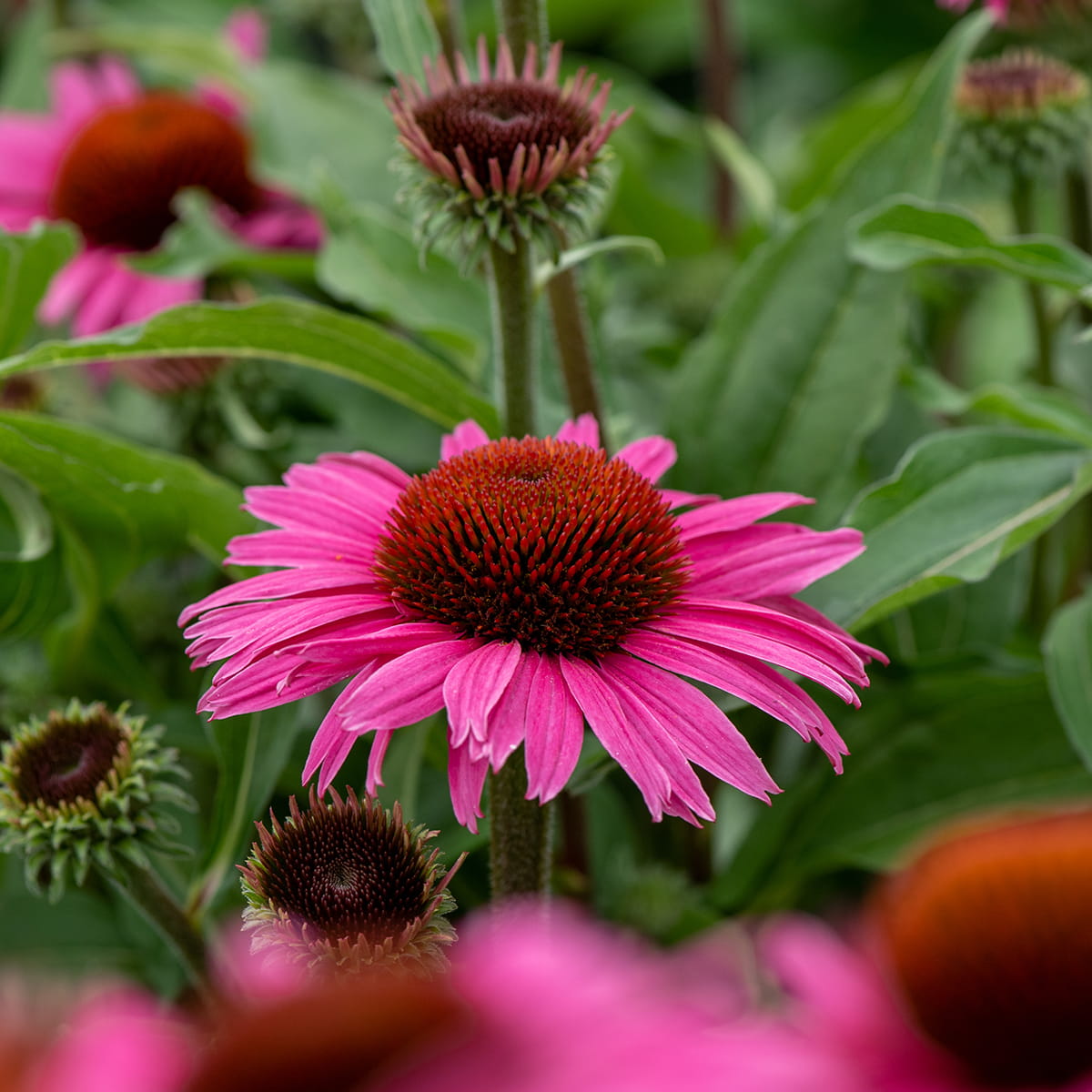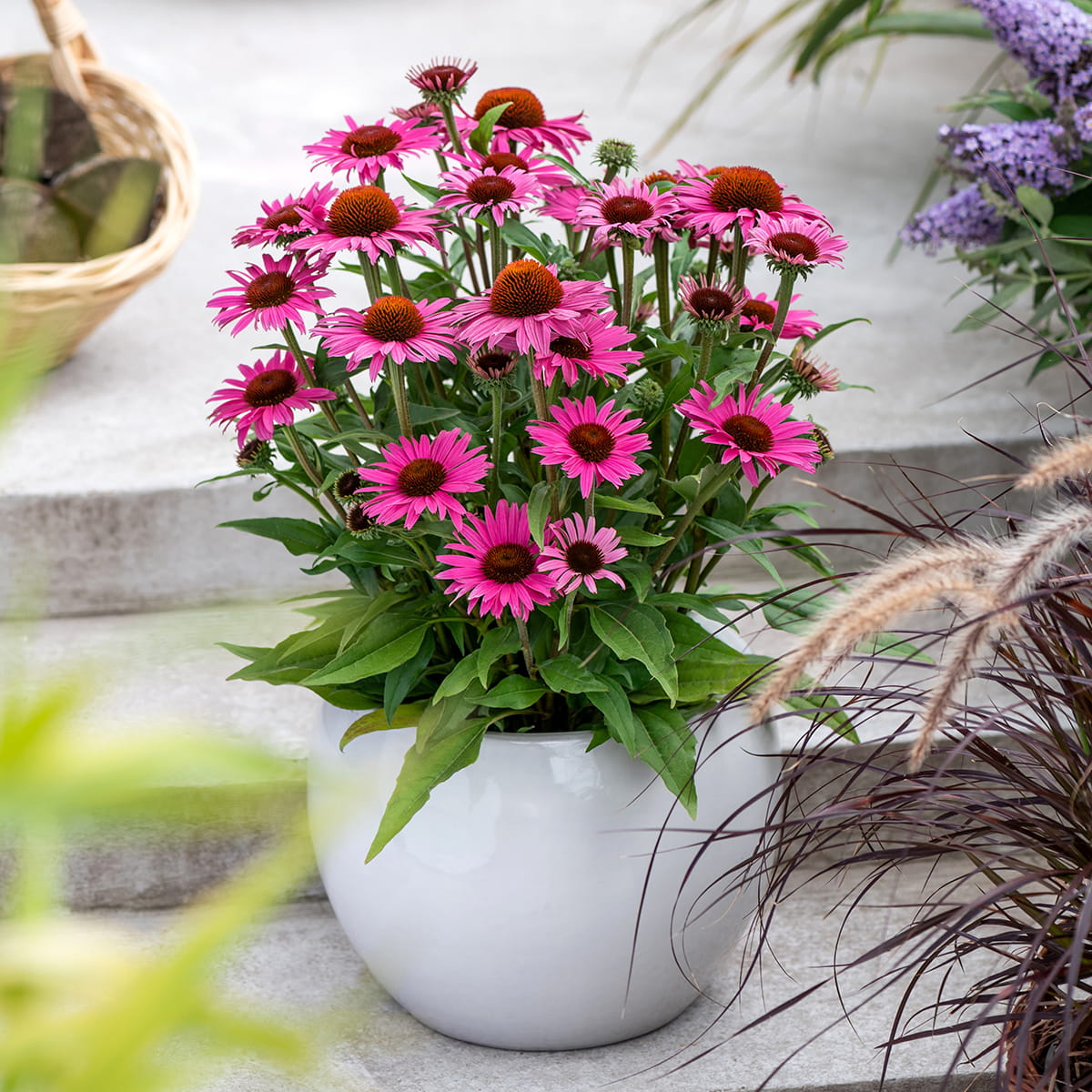 Jeżówka 'Pearl Dark Pink' to wyjątkowa odmiana charakteryzująca się intensywnie różowymi kwiatami o złocistych środkach, które przyciągają motyle i pszczoły. Roślina osiąga wysokość od 60 do 80 cm i wytwarza solidne, rozgałęzione łodygi. Kwitnie od wczesnego lata do jesieni, dodając ogrodowi uroku i koloru.